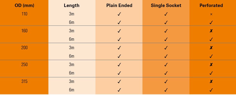 uPVC “terracotta” coloured pipe designed for use in both domestic and commercial, foul water, gravity drainage and sewerage applications to a depth of 10m.