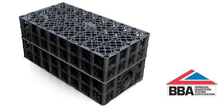 They provide a 95% void space for capturing surface water run-off from roof gutters and surface drains.